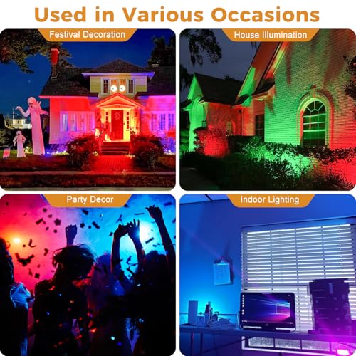 - 【4 Lighting Modes & Dimmable】Bring your events to life with four exciting modes: Flash, Strobe, Fade, and Smooth transition. These captivating effects are perfect for creating an unforgettable party vibe, a dramatic Halloween display, or adding a dynamic flair to your Christmas decorations. Also, customize your preferred ambiance with continuous dimming from 10% to 100% to perfectly match your lighting needs