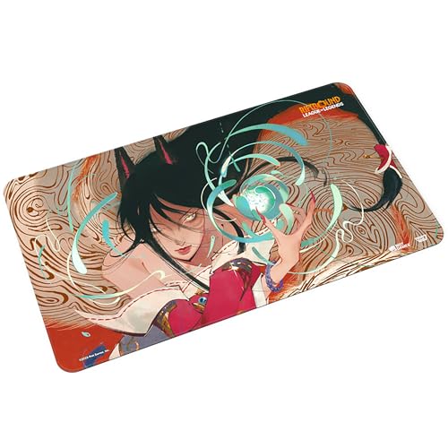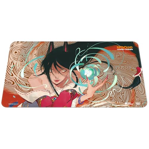 Forge your path through the Rift with this Ahri playmat that provides protection, style, and serious presence at the table. Stitched trim playmat in a retail ready box allows players to protect their cards in style! One of 4 different playmats created for the release of the Riftbound: Origins booster set release! Sleeves with matching Champions and designs are also available! Collect them all – Jinx, Volibear, Miss Fortune, and Ahri!
