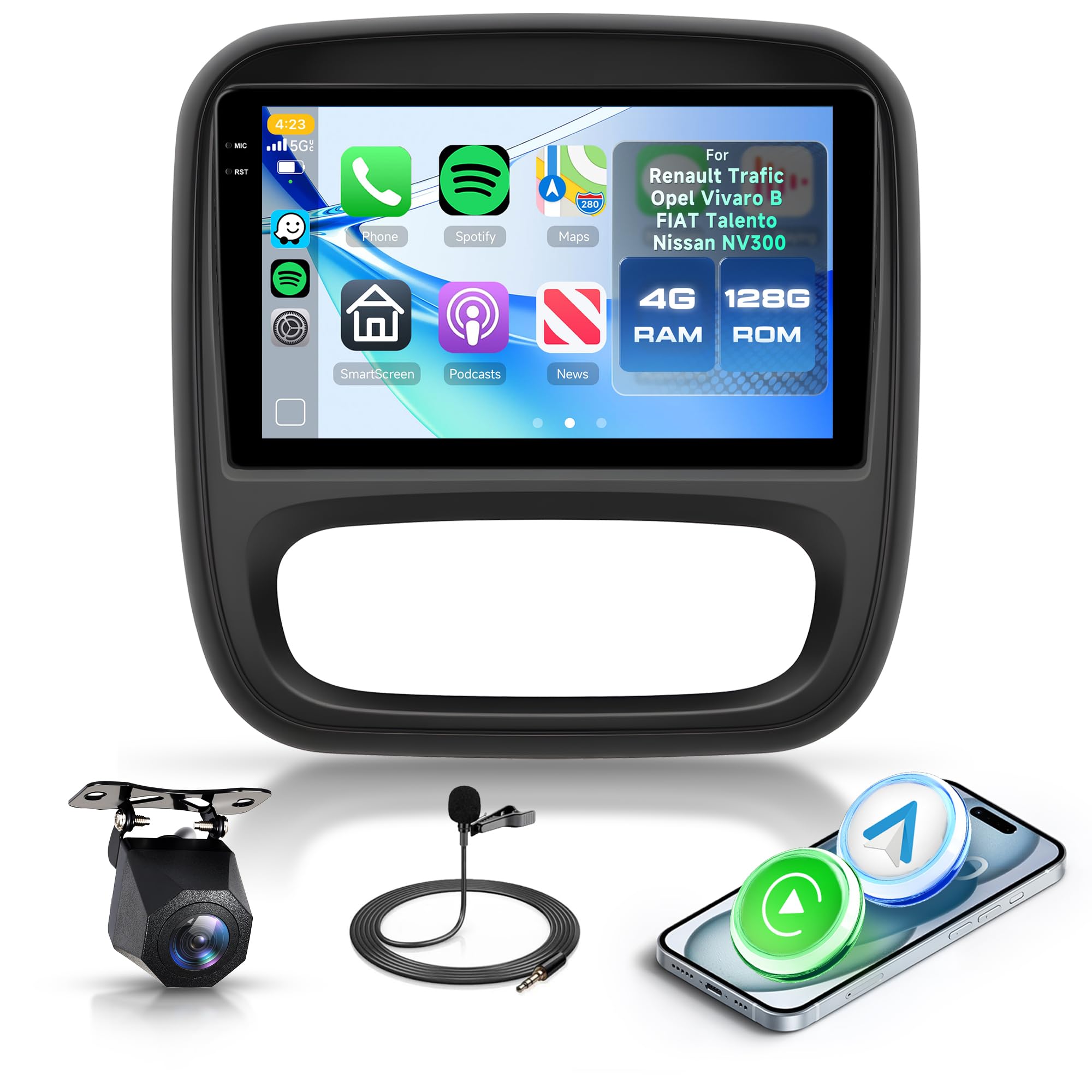 Rimoody 4G 128G Android Car Radio for Vauxhall Vivaro Renault Trafic FIAT Talento Nissan NV300/VW30 9'' In-Cell Screen Car Stereo Wireless CarPlay Android Auto/GPS/Bluetooth/FM RDS/EQ/Backup Camera