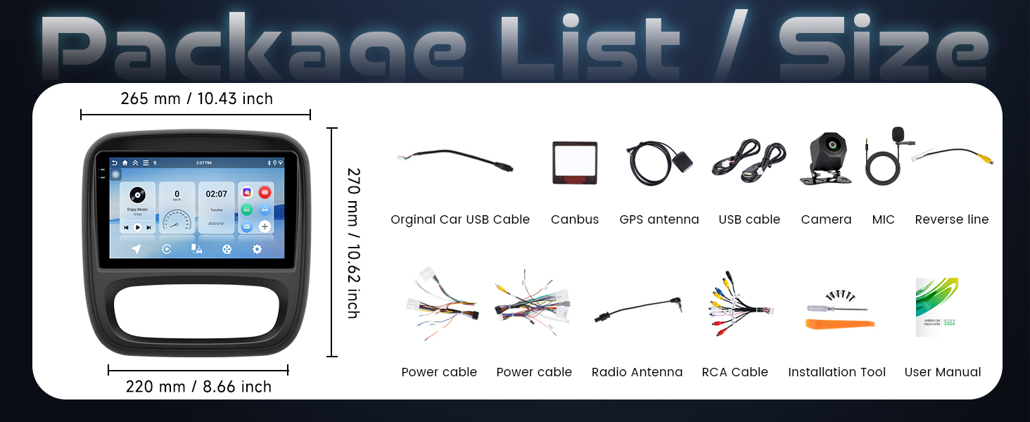 - 【Included AHD Reverse Cam & Practical Extras】this for Renault Trafic stereo comes with an AHD reverse camera (high-def rear view for tight UK parking spots) and an external microphone (crisp Bluetooth calls, even with road noise). It also has split-screen mode (e.g., navigation + music), a customizable home page (pin your go-to apps), and dual USB ports for fast phone charging or playing music from USB drives.