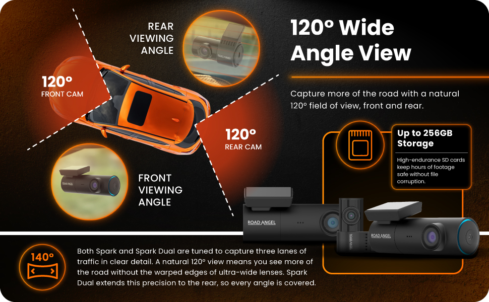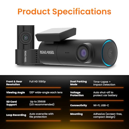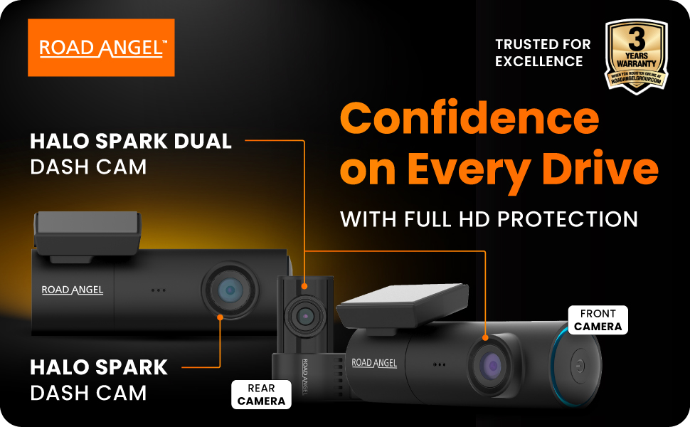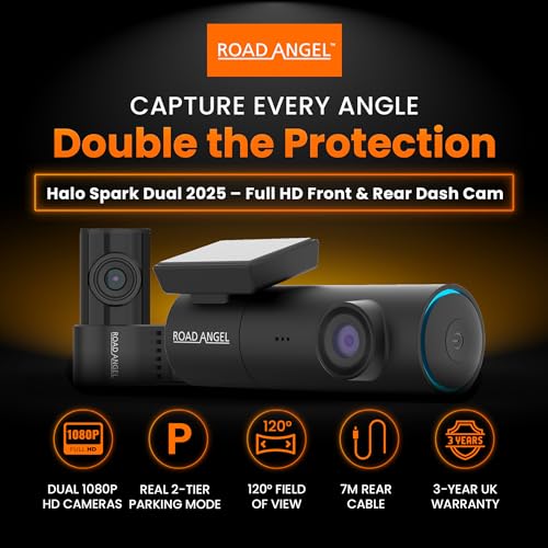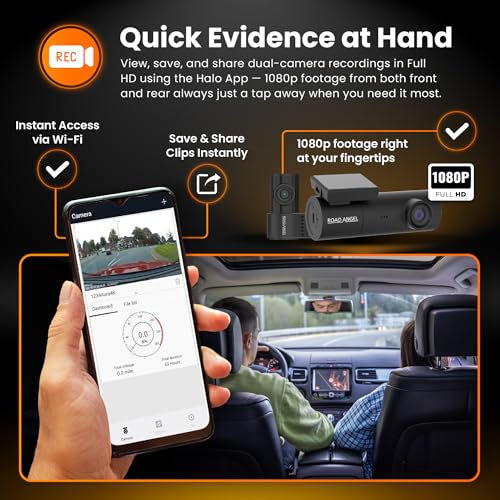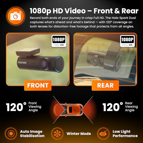 Road Angel Halo Spark Dual 1080p HD Car Camera Dash Cam Front and Rear – Dashcam Front and Rear Camera – Dashcams for Cars – Car On-Dash Mounted Cameras