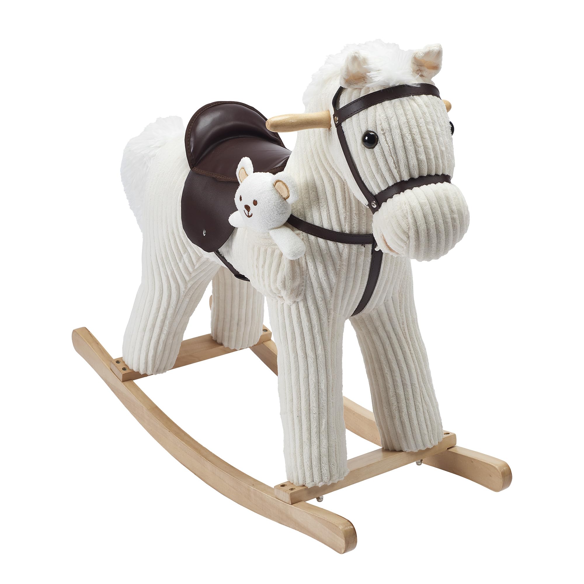 Rocking Horse & Animal Toy with Sound – Unicorn, Elephant, Donkey & Horse Designs – Soft Plush Rocker for Babies 9 Months+ | Develops Motor Skills & Sensory Play – Safe Wooden Base (Marshmallow Horse)