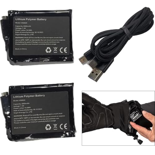 RST Heated Motorcycle Glove Batteries Set with Dual Charging Cable – Rechargeable Li-Ion Replacement Power Pack for Motorbike RST Paragon & All RST Heated Gloves