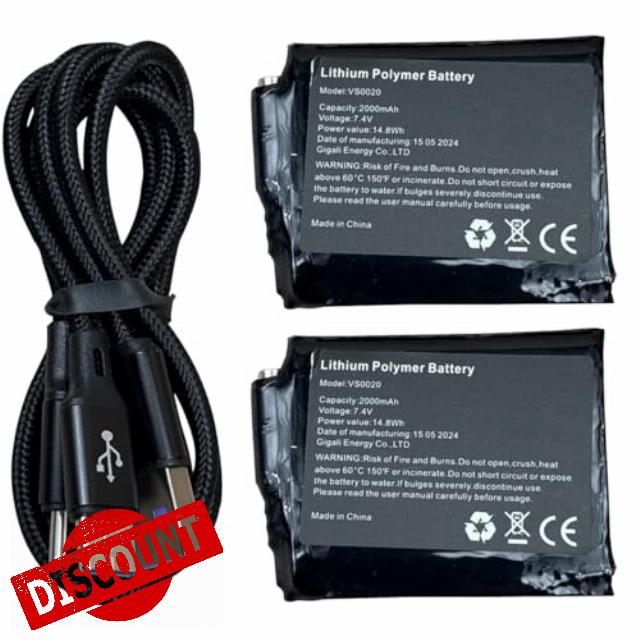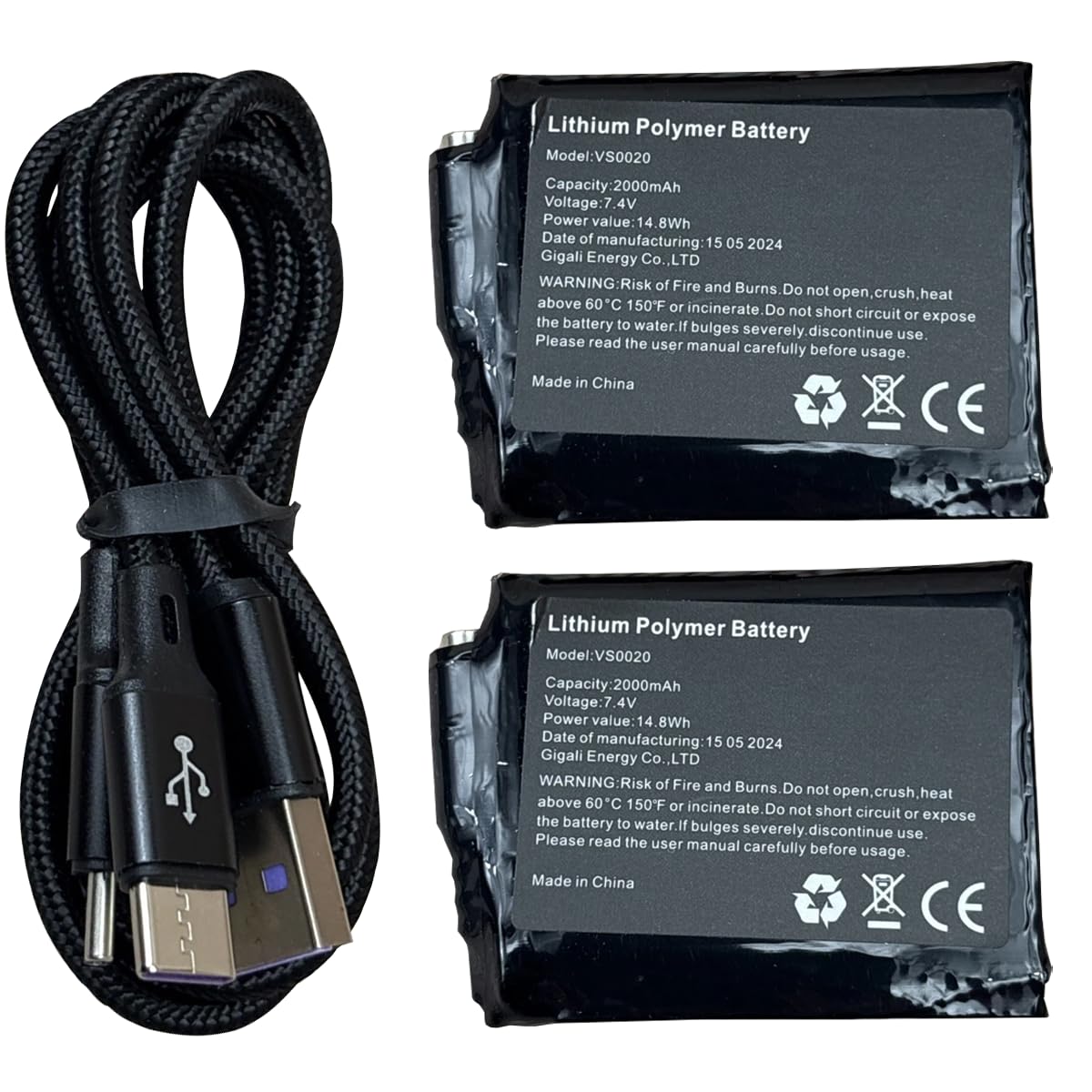 Complete Power Solution: Includes 2x rechargeable lithium-ion batteries + 1x dual charging cable.