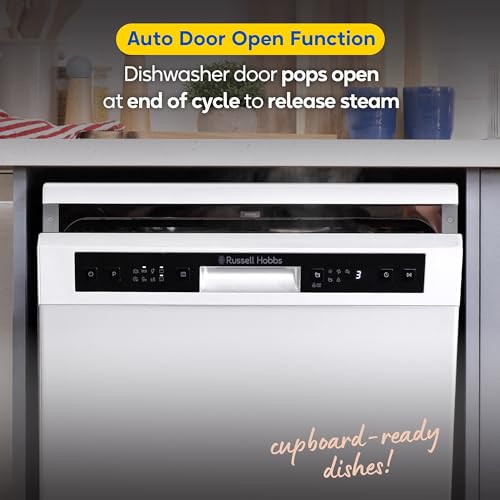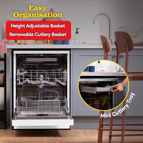 Russell Hobbs Freestanding Dishwasher, Class D, 14 Place Settings, 6 Wash Programs, 24-Hour Delay Start, Auto Door Open, 1 x Height Adjustable Basket and Mini Cutlery Tray in White, RH60DW00D2W [Energy Class D]