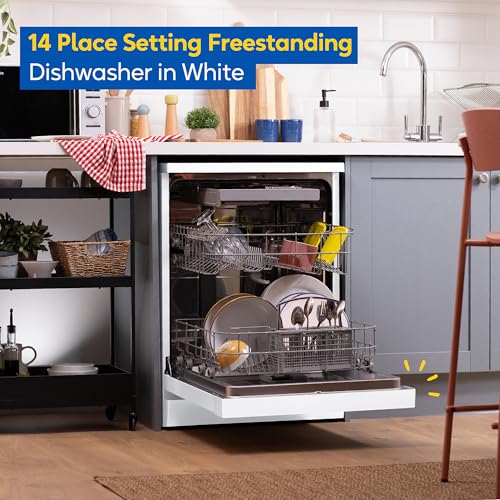 Built for busy households, this freestanding dishwasher tackles mealtime mess in one go with space for up to 14 place settings at once. Perfect for big families or busy homes, it handles everything from family feasts to delicate glassware with ease. Enjoy sparkling results and more time for what really matters.