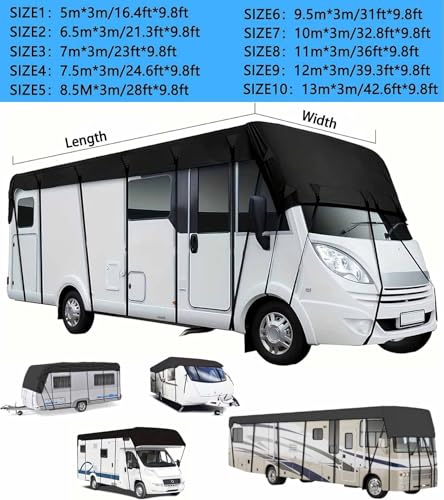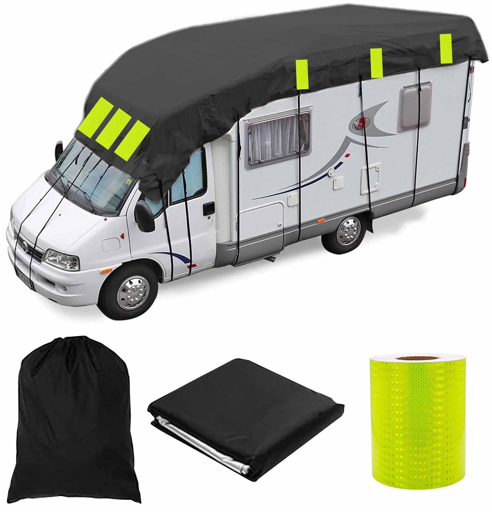 - All Season UV & Weather Protection: rv roof cover tarp made from quality 210D Oxford, Against weather conditions, dust, rainwater, snow, scratches, and UV radiation throughout the year.