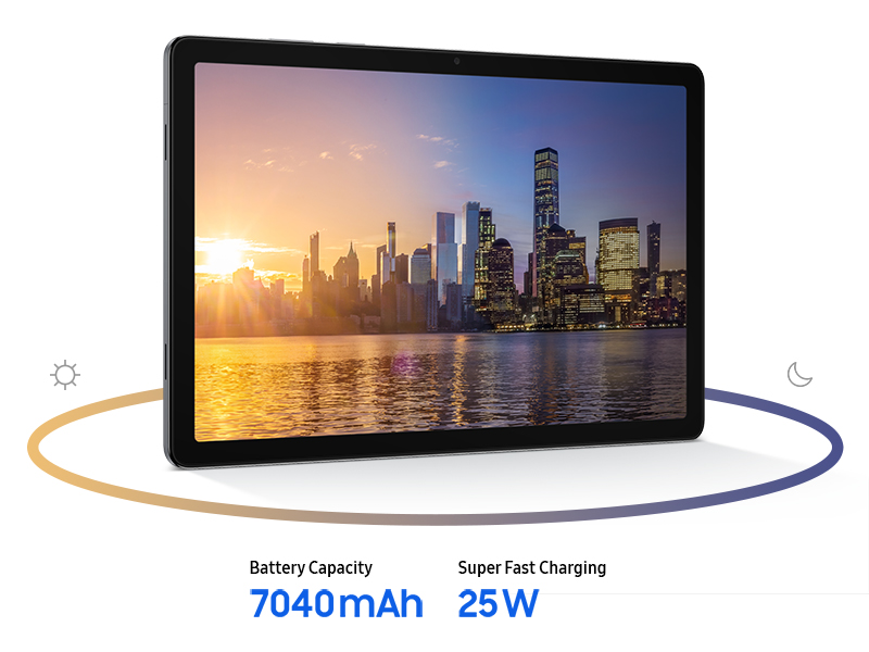 Powered by a 7,040 mAh battery, the new Galaxy Tab A11+ can keep up with all of your main activities, whether you're into gaming, enjoy scrolling through social media, or binge-watching your favourite shows.¹⁰ ¹¹ ¹² ¹³