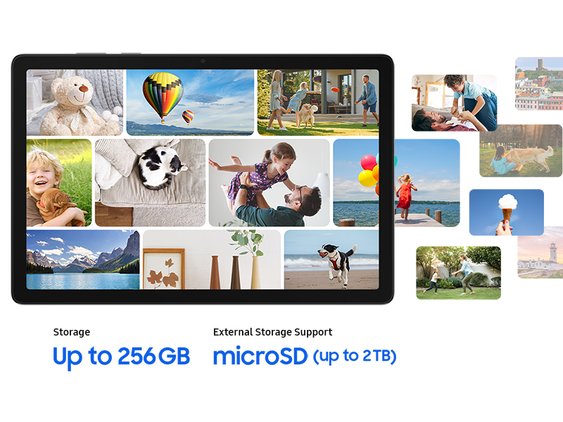 The Galaxy Tab A11+ offers ample memory and storage capacity. With up to 8 GB of memory, it enables fast, seamless multitasking, while 128 GB of storage provides plenty of space for large files. Plus, if needed, you can expand the storage up to 2 TB with a microSD card.⁵ ⁶ ⁷ ⁸ ⁹