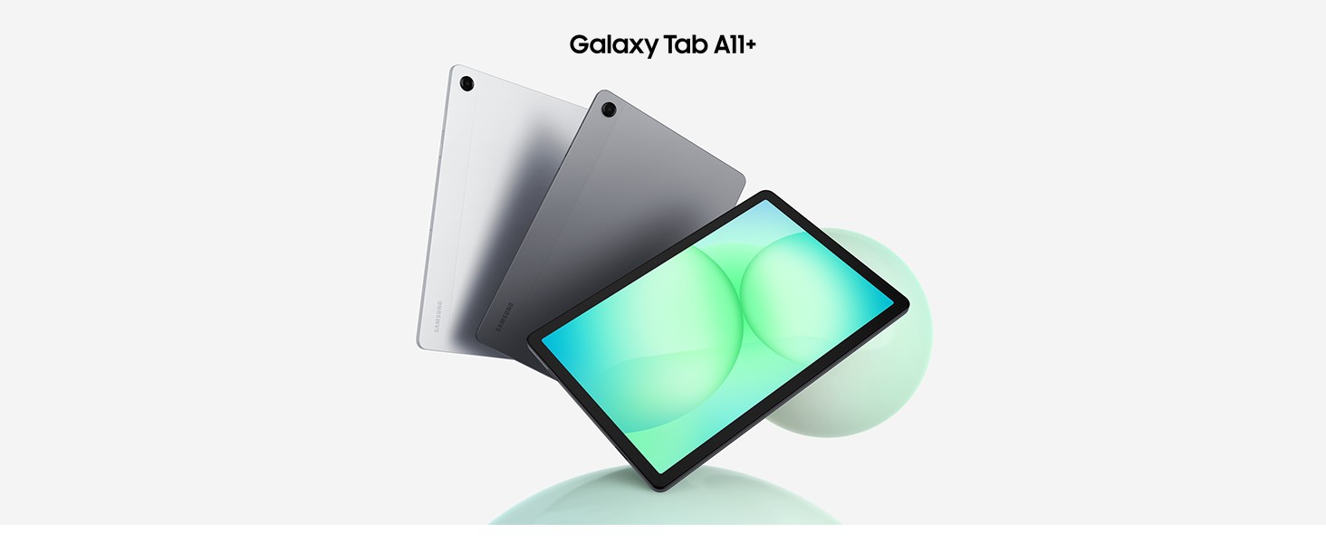 1. Colour and model availability may vary depending on country, region or carrier. 2. The enhanced performance figures are based on a comparison of Galaxy Tab A11+ to Tab A9+. 3. Actual performance will depend on user environment, conditions and pre-installed software and applications. 4. Gemini is a subsidiary of Google LLC. Results for illustrative purposes. Gemini Live feature requires internet connection and Google Account login. Service availability may vary by country, language, device model. Features may differ depending on subscription and results may vary. Compatible with certain features and certain accounts. Only available to users 18 years or older. Accuracy of results is not guaranteed. 5. Image simulated for illustrative purposes. 6. Storage options and availability may vary by country, region or carrier. 7. Actual storage availability may vary depending on pre-installed software. 8.Two memory and storage options are available: 6 GB memory and 128 GB storage, 8 GB memory and 256 GB storage. 9. MicroSD card sold separately. All models support microSD cards with up to 2 TB storage. External memory can be used to store media (photos, video and music files), but not applications. Availability may vary by country and manufacturer.10. Typical value tested under third-party laboratory conditions. Typical value is the estimated average value considering the deviation in battery capacity among the battery samples tested under IEC 61960 standard. Rated (minimum) capacity is 6,840 mAh. 11. Battery life is based on results from internal lab tests for typical usage pattern scenarios conducted by Samsung. Actual battery life may vary depending on network environment, usage patterns and other factors.12. Charging speed may vary depending on charging conditions and other factors.13. Using the original Samsung data cable is recommended.14. Image simulated for illustrative purposes.15. Measured diagonally, Galaxy Tab A11+'s screen size is 11.0″ in the full rectangle without accounting for the rounded corners. 16. Actual viewable area is less due to the rounded corners and the camera hole.17. Image simulated for illustrative purposes. Actual UI may be different.18. Image simulated for illustrative purposes.19. Galaxy Tab A11+ includes Quad Speakers (1.2W).20. In-box items may vary by country, region, or service provider.21. The data cable is available in white only.22. Travel Adapter is NOT included.23. Wired transfers from iOS require the receiving device to have Android 5.0 or later and the sending device to have iOS 5 or later. Transfers can be completed without a cable through a wireless connection or iCloud. For wireless connections, the receiving device must have Android 5.0 or later and the sending device must have iOS 12 or later. iCloud transfers require the receiving device to have Android 5.0 or later and the sending device to have iOS 5 or later. Open Smart Switch Mobile in “Settings” on the receiving Galaxy device or download the Smart Switch Mobile app from the Galaxy Store. For wireless transfers, download Smart Switch for iOS from the App Store on your iPhone or iPad. Data, content and apps available for transfer may vary by transmission method. Contacts, gallery, videos, calendars and reminders can be transferred wirelessly from an iOS device.24. To be eligible for trade in, your qualifying device must meet all trade in Program eligibility requirements. For detailed information, please refer to samsung.com/[countrycode]/trade in/.25. Terms and conditions apply. Samsung Care+ coverage, service type and promotion details may vary by country/region and deductible (service fee) may apply. To be eligible for Samsung Care+ promotion benefit, registration may be required. For detailed Samsung Care+ information, please visit samsung.com/samsung-care-plus/.