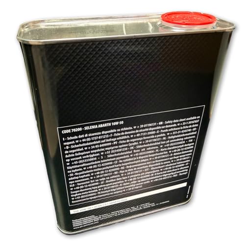 Selenia Abarth 10W-50 Engine Oil is a fully synthetic “preparazione” lubricant that warrants the utmost performance for engines with high specific power.Selenia Abarth Oil 10W-50 is the lubricant formulated for all Abarth cars fitted with the Tuning Kit that increases the engine performance. The Abarth relationship is a testimony to the supremacy of Selenia products. Characteristics: Selenia Abarth Motor Oil 10w-50 is able of meeting the higher performance requirements of the engine. It ensures very high stability at high temperatures. It prevents fouling of the turbine optimising engine performance level. High stability to oxidation. Maximum grip of the lubricating film.