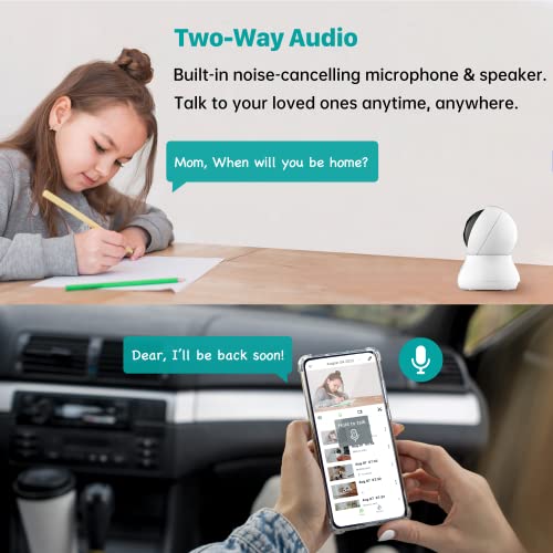✅KEEP AN EYE ON YOUR PROPERTY WHEREVER YOU ARE – This 2K HD indoor WiFi camera offers crystal clear 2K image with enhanced 105° wide-angle lenses combined with 320° horizontal and 80° vertical swivel ranges to create full 360° coverage and 4X digital zoom. Adjust the surveillance angle of the indoor security camera and enlarge the video to see the details clearly through the app.