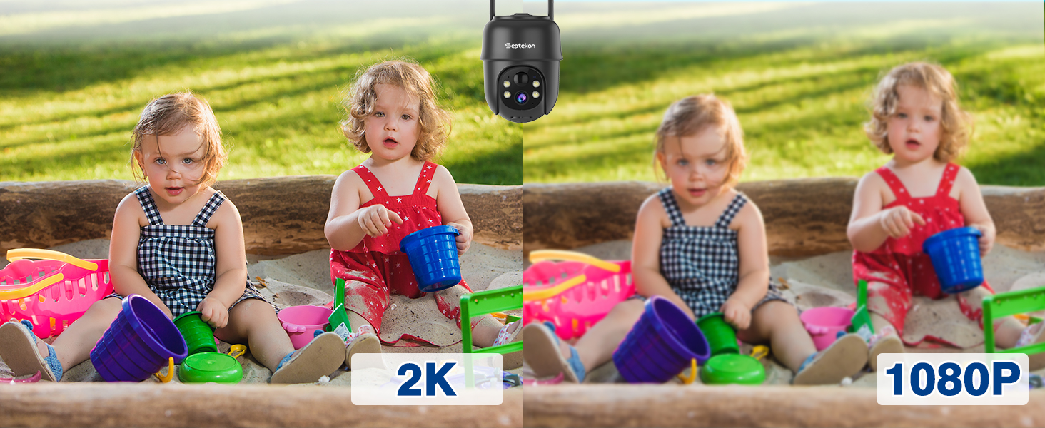 - 【2K 3MP Live Video & Color Night Vision】Septekon wireless security camera provides 2K Full HD resolution, ensuring crystal-clear video quality both day and night. Built-in 2 IR lights and 2 white lights, you can see vivid and accurate colors in low-light conditions. (Note: The spotlight feature must be manually activated to view color night vision)