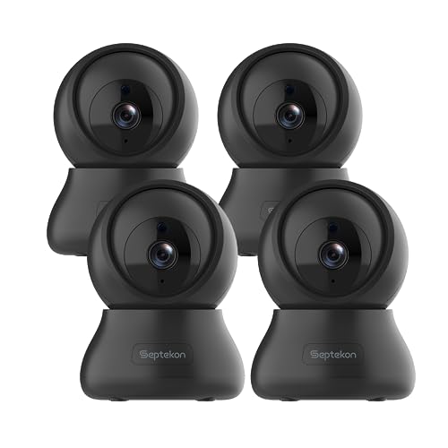 Septekon Security Cameras Indoor, 2K Wired Cameras for Home Security with Night Vision, 2-Way Audio, Motion Detection, Compatible with Alexa (4 Pack), Black