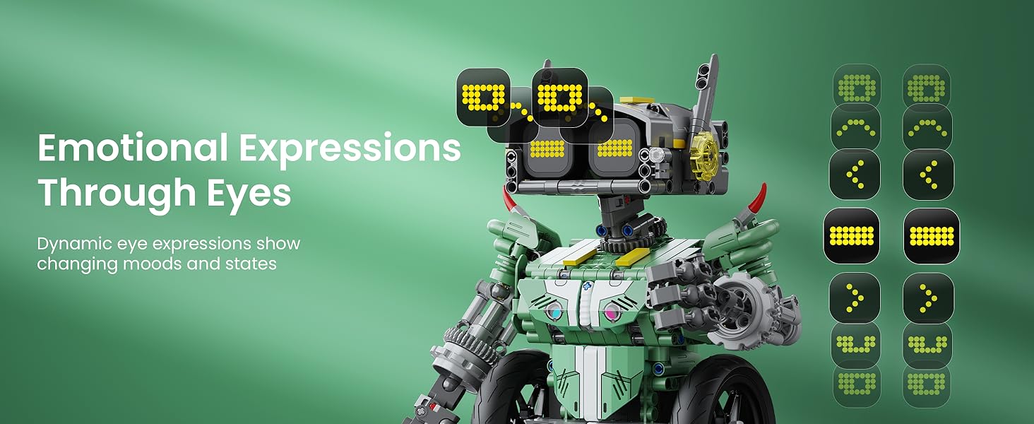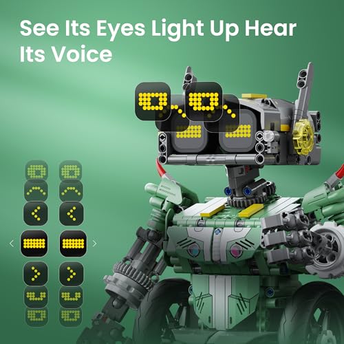 Multi-Functional Robot Kit: Features LED eyes that change expressions and fun sound effects for lively interaction. Control it via Bluetooth app or remote to move forward, backward, and rotate freely—encouraging creative play and hands-on STEM learning through fun