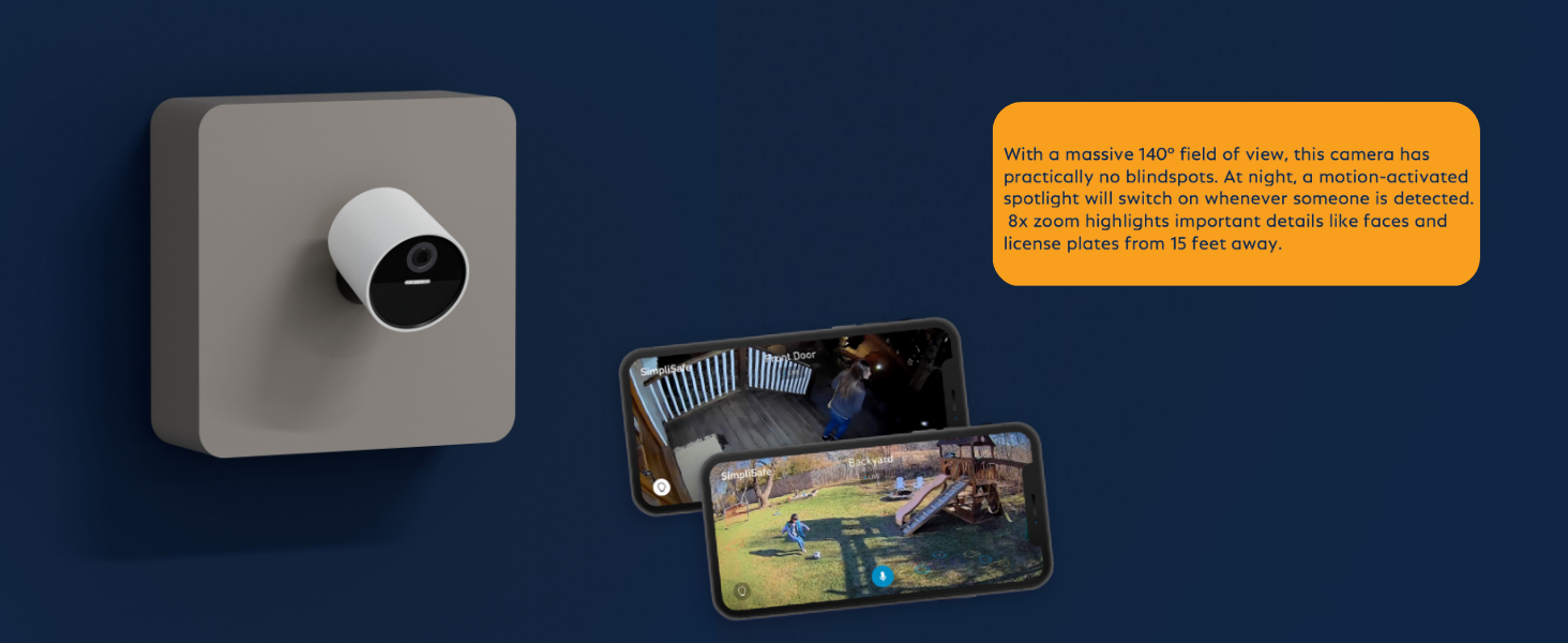 - SUPER WIDE VIEW: With a 140 degree field of view, and 10x digital zoom, there are virtually no blind spots for intruders. Stream 1080p HD image quality directly to the SimpliSafe app