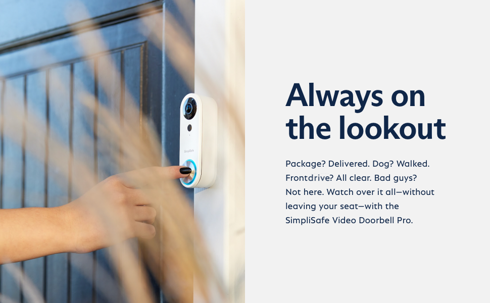 - WIRED VIDEO DOORBELL FOR SIMPLISAFE ONLY: Package? Delivered. Dog? Walked. Driveway? All clear. Bad guys? Not here. Watch over it all – without leaving your seat – with the SimpliSafe Video Doorbell Pro