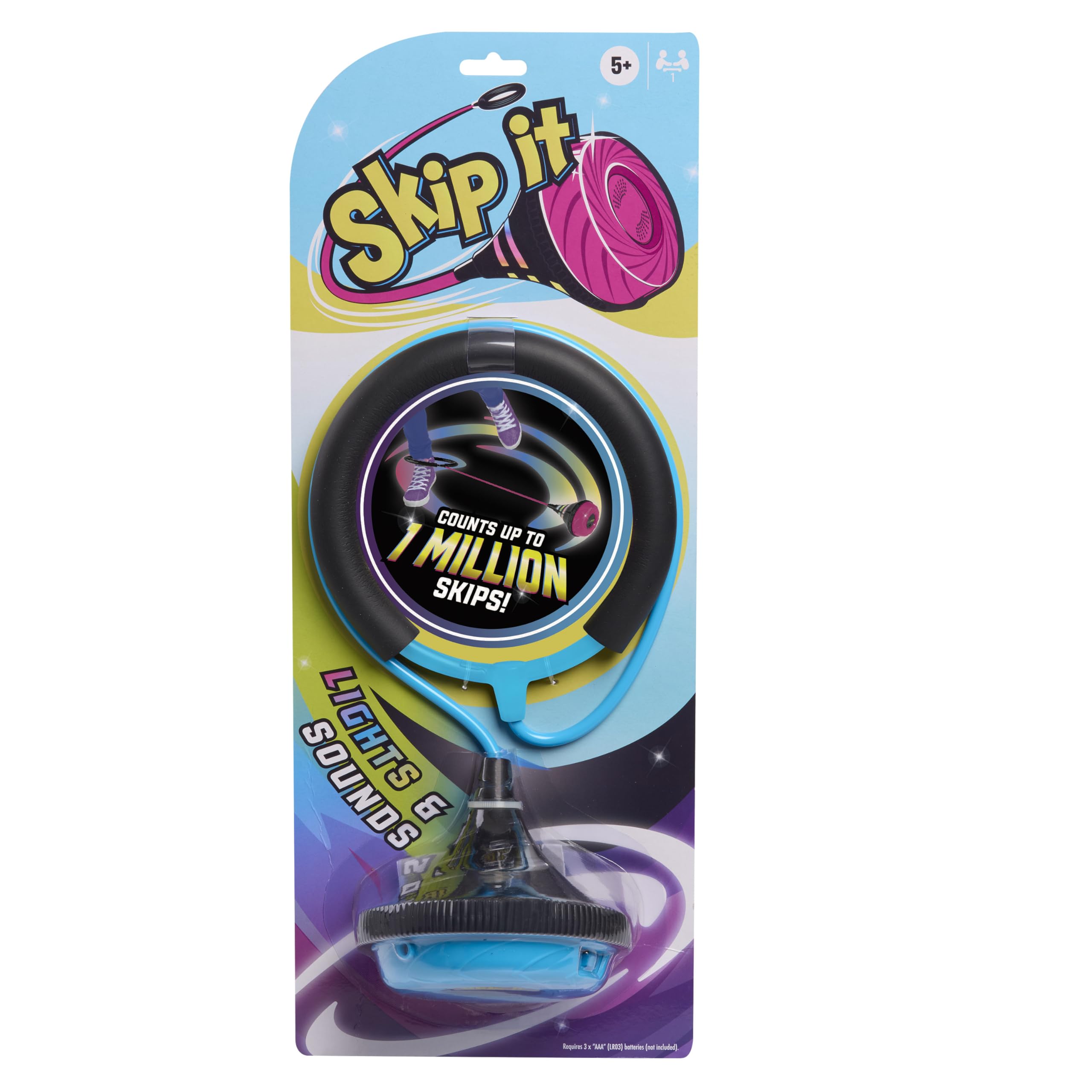 - Don’t Skip This Bullet Point: This blue-colored revamp of the original Skip It toy adds a digital counter display, lights, and sounds. It keeps track of the high score and total lifetime count – up to a whopping 1 million skips.