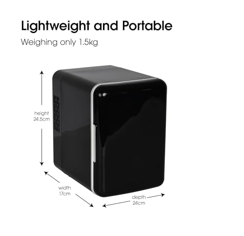 ✔️ COMPACT & PORTABLE: The SLx 4L Mini Fridge is lightweight at just 1.5kg and can hold up to 6 x 330ml cans. Its small footprint makes it easy to place on a desk, bedside table, work van shelf, or travel setup. Designed to be quiet and efficient, it’s a convenient cooling solution wherever you need it.
