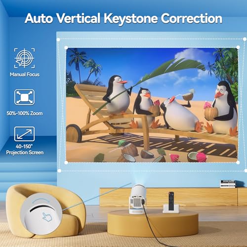 Smart Mini Projector – 1080P Full HD with 4K Support, 20000 Lumens, Android 11, WiFi 6, Bluetooth 5.0, HiFi Speaker, Auto Keystone, 180° Rotation Projector for Bedroom & Home Cinema
