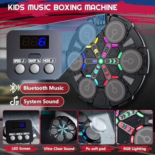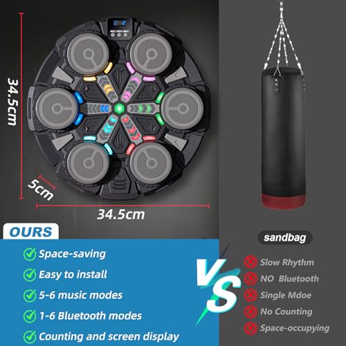 【NEW WAY TO EXERCISE】Smart music boxing machine reacts to the blows of your fists, providing a realistic experience. Hit the luminous target with quick response, Flashing LED targets synchronize with music beats for rhythm-based workouts. Allowing you to enjoy full-body exercise targeting different muscle groups in entertainment, without the need for sparring, you will experience unprecedented training fun.