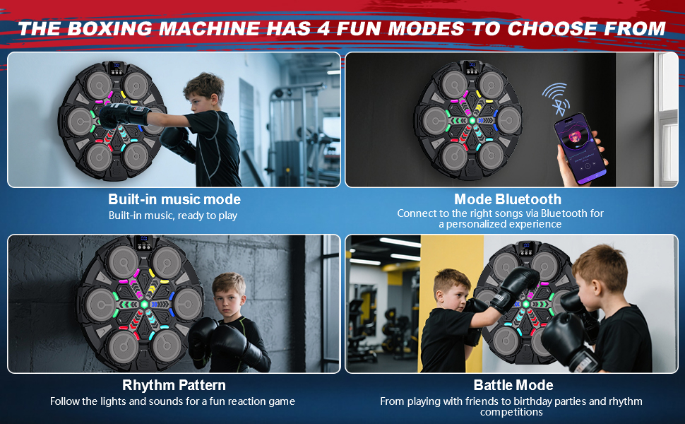 【Professional Boxing Experience】Music boxing machine is equipped with 9 modes and 9 speeds to customize your exercise intensity to meet different training needs and help you easily create professional fitness results at home. Boxing machine can improve your reaction speed and body coordination. This music boxing machine is the perfect professional training and daily exercise tool for professional boxers, fitness professionals, weight loss people, children, teenagers, office workers, etc.