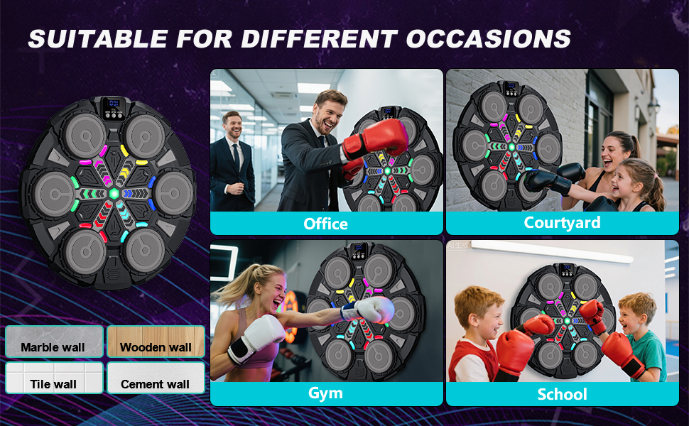 ️【Premium Materials & Design】The boxing machine wall mounted uses advanced pressure sensors to achieve high-speed response. The impact surface is made of high-elastic foam material, which has strong rebound and shock-absorbing effects to protect your hands from injury during training. Made of sturdy PC panel and ABS alloy material, it can bear weight up to 880 lbs. Unlike traditional fitness equipment, our music boxing machines combine exercise and leisure, creating a harmonious fusion that leads to the discovery of new and exciting experiences.