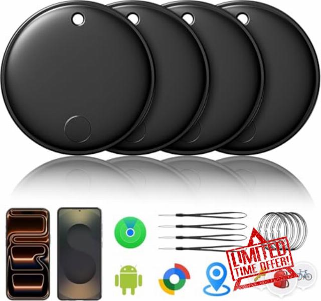 Smart Tracker Air Tag-4 Packs, Works with Apple Find My (iOS) & Google Find Hub (Android) Compatible, Bluetooth Item Finder, Item Locator, Replaceable Battery, for Key, Backpack, Luggage, Black