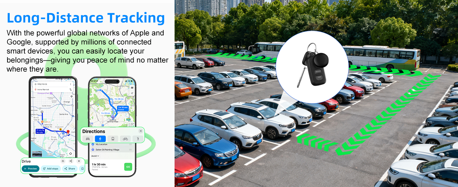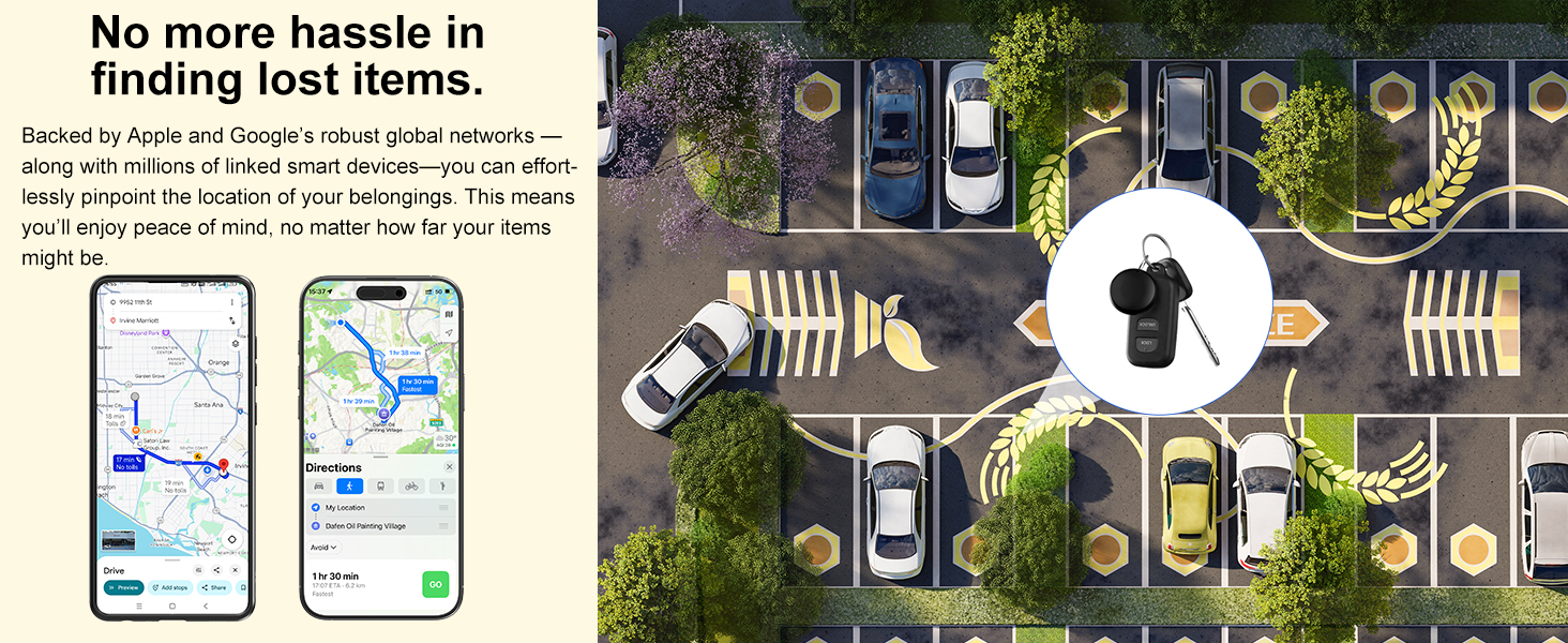Dual-System Compatibility for Wide Use: Seamlessly works with both iOS and Android devices. It supports Apple's well-known Find My app (exclusive to iOS) and Google's Find Hub (for Android), eliminating the need to repurchase a tracker when switching phone systems.(Important Note: This tracker cannot connect to two devices simultaneously; it can only be paired with one device at a time.)