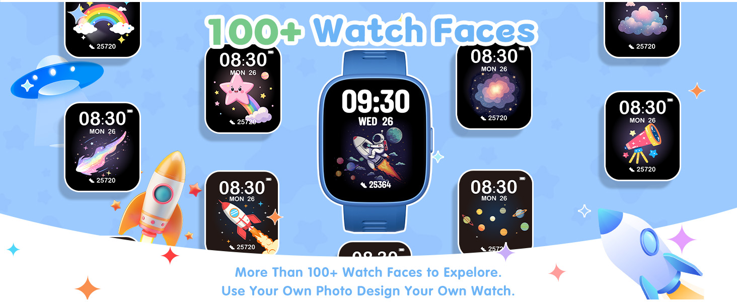 - Customizable Watch Face & 1.83" HD Touch Screen Personalize the 1.83" HD touch screen with 100+ cloud dials or upload your child’s photos to create unique watch faces. This feature sparks creativity and makes the watch truly their own.