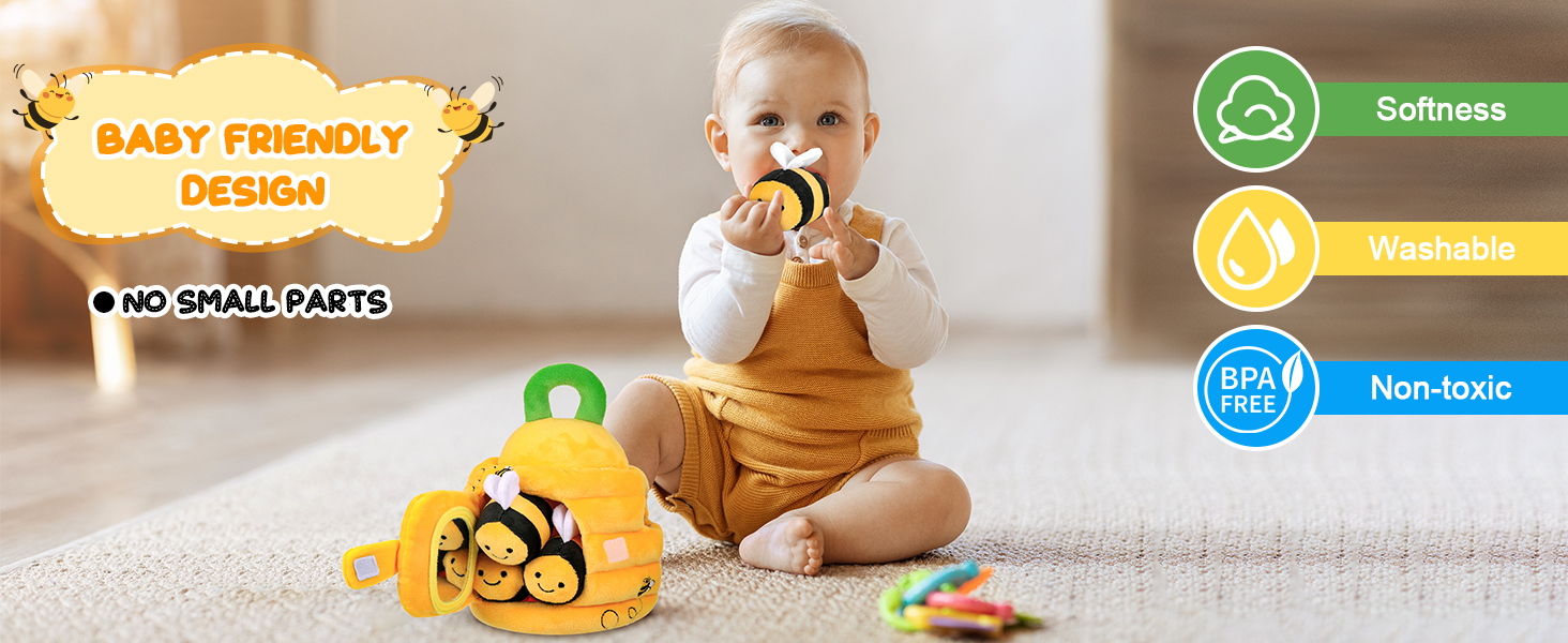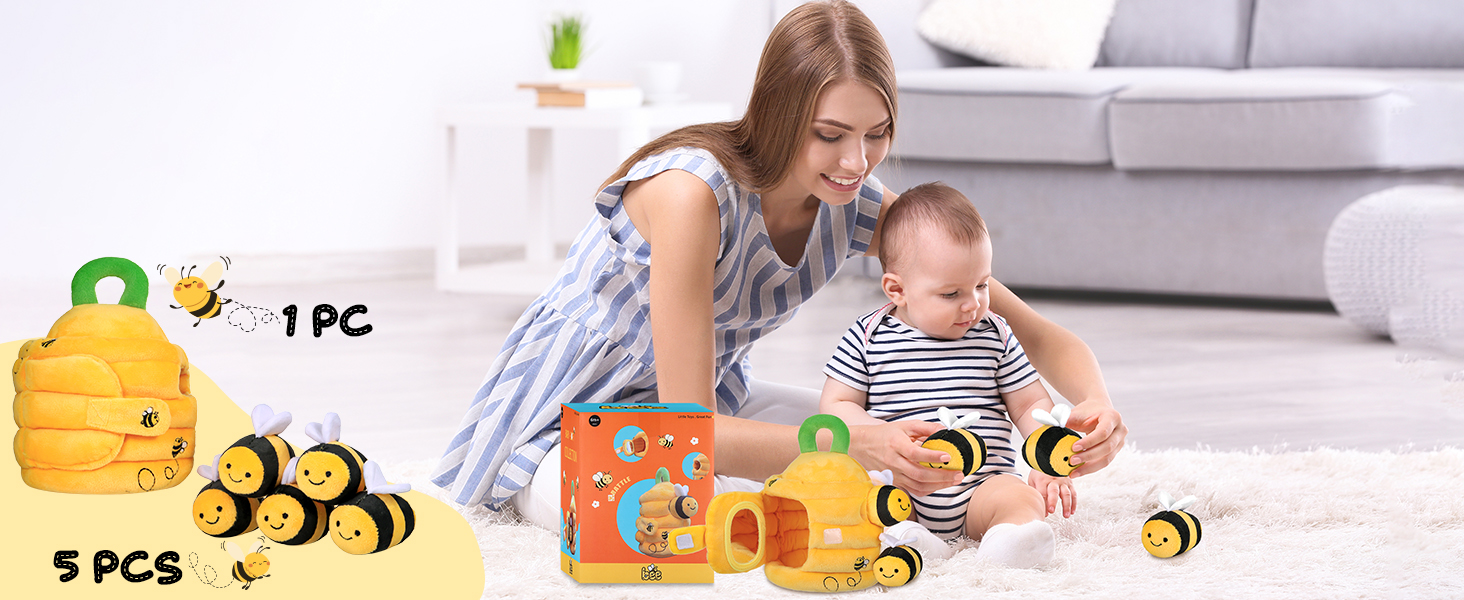 Soft Baby Beehive Toy with 5 Sensory Bees, Sensory Toys