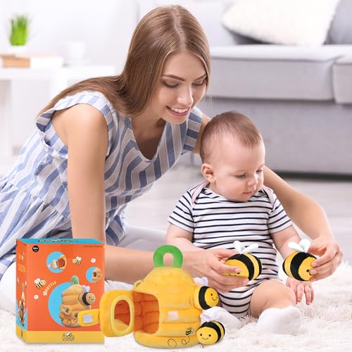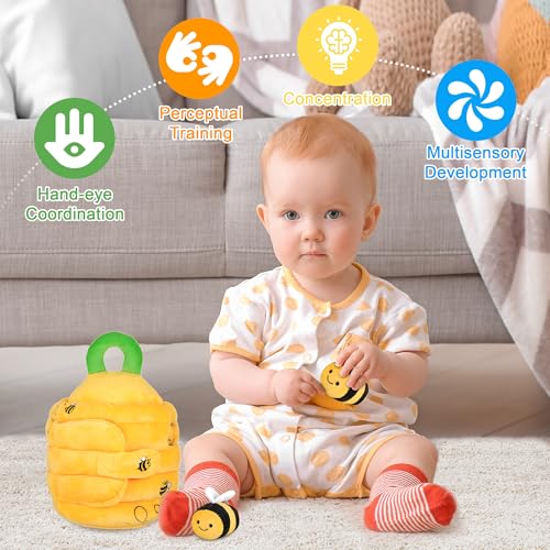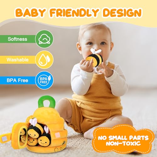 Soft Baby Beehive Toy with 5 Sensory Bees, Sensory Toys for Babies 6-12 Months, Busy Montessori Toys for Toddlers 0-3 Years Old, Gifts for Boys & Girls