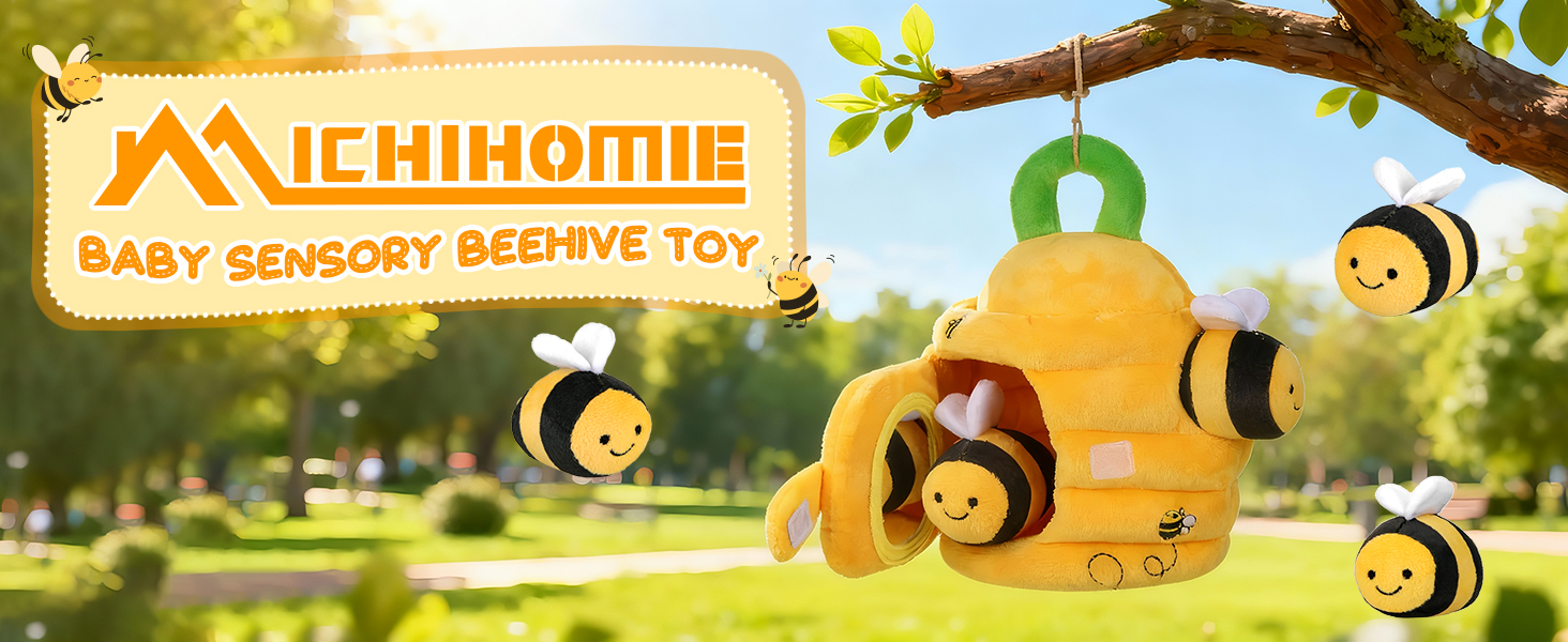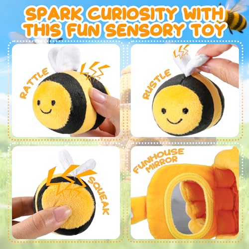 【Multi-Sensory Adventure】Ignite your baby’s curiosity with our Sensory Beehive Set! Each of the 5 textured bees includes a rattle, crinkle wings, a gentle squeaker, and a child-safe mirror—perfect for stimulating sight, sound, and touch. Designed to support sensory development through immersive, hands-on play.