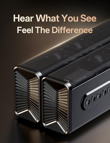 - Immersive High-Fidelity Sound Quality:Get immersed in rich, room-filling audio. Equipped with high-quality drivers and enhanced bass technology, this soundbar delivers stunning clarity and powerful, distortion-free sound whether you're watching blockbusters, gaming, or streaming your favorite music.