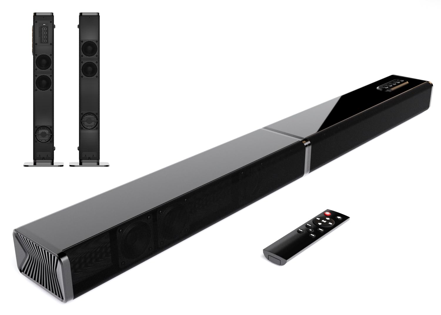 Sound Bar,100W Sound Bar for Smart TV,Bluetooth V5.3 speakers, 2 in 1 Home Speaker, ARC/OPTI/AUX/USB Connections, for TV/PC/Projectors,Wall Mountable