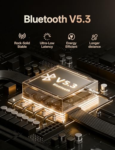 - Next-Gen Bluetooth 5.3 Connectivity:Enjoy a superior wireless experience with cutting-edge Bluetooth 5.3 technology. It provides an ultra-stable, rock-solid connection, significantly lower latency for perfect audio-video sync in games and movies, and improved energy efficiency for longer playback.