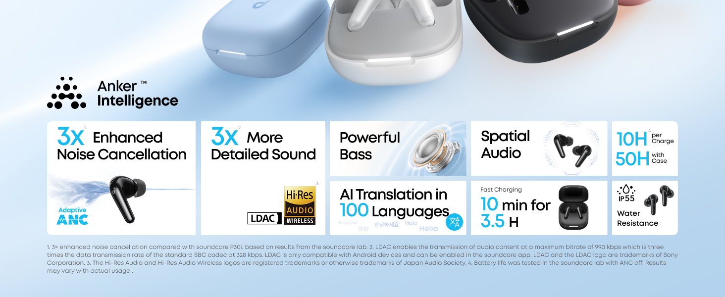 soundcore P31i by Anker, Real-Time Adaptive Noise Cancelling, Hi-Res Sound, Wireless Bluetooth Earbuds, Translation Earbuds, 50H Playtime, Wireless Earbuds, Bluetooth Earbuds, Bluetooth Headphones