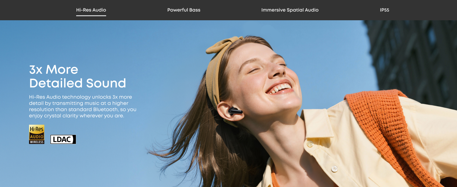 Hi-Res Certified Sound with LDAC: Enjoy stunning, lossless Hi-Fi audio powered by LDAC and Hi-Res Audio certifications. These noise-cancelling earbuds accurately deliver the fine details for rich, well-balanced treble and bass.
