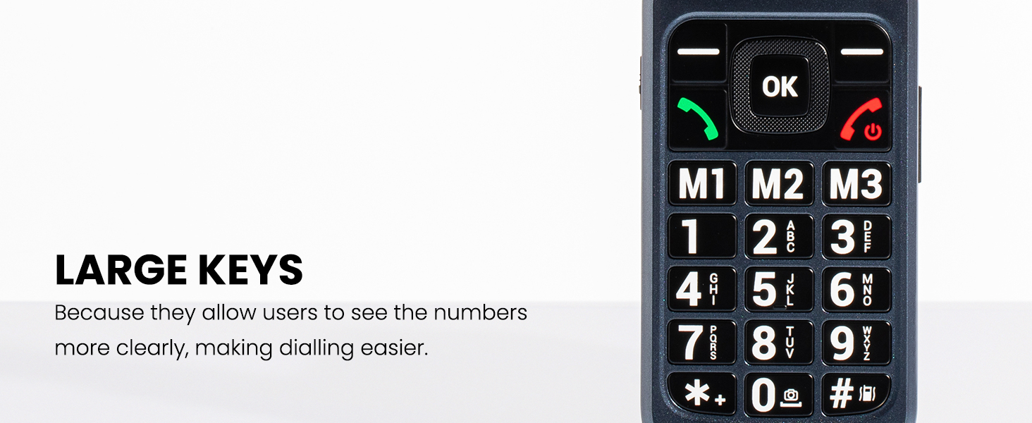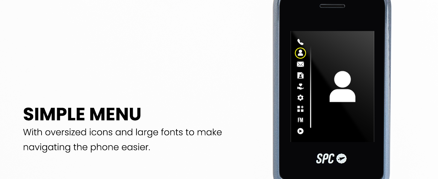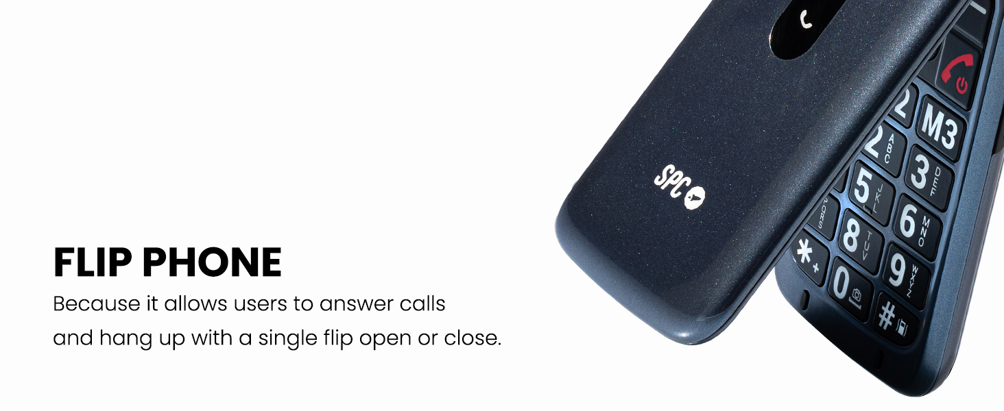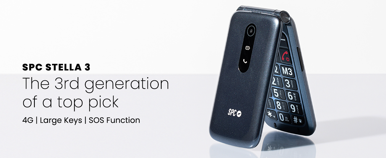 - | LARGE KEYS AND A SIMPLE MENU TO MAKE THINGS EASIER | SPC STELLA 3 is here to make communication easier, and that's why it includes XL keys that are ideal for accurate dialling. Its simplified menu displays oversized icons and large fonts for intuitive navigation. In addition, its flip design allows you to easily answer and hang up calls by simply opening or closing the lid.