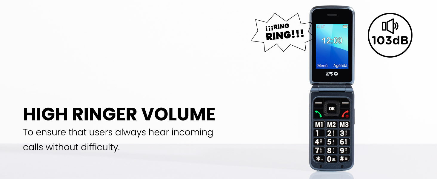 - | BOLD SOUND & HEARING AID COMPATIBILITY (HAC) | The device's extra-loud ringer which can be adjusted to up to 103 dB ensures all calls and notifications are heard clearly. Plus, its hearing aid compatibility (HAC) prevents interference and improves sound quality, allowing for conversations without interruptions.