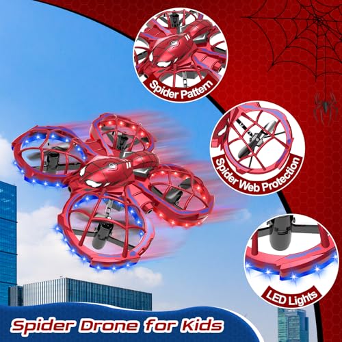 Spider Mini Drone for Kids Beginners – Cool Throw to Go RC Quadcopter with LED Lights, 3D Flips, 2 Rechargeable Batteries, Headless Mode, 3 Speed Mode, Obstacle Avoidance Function, Indoor Outdoor Toys