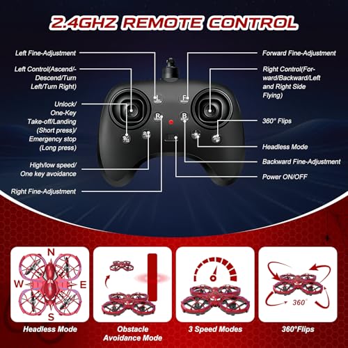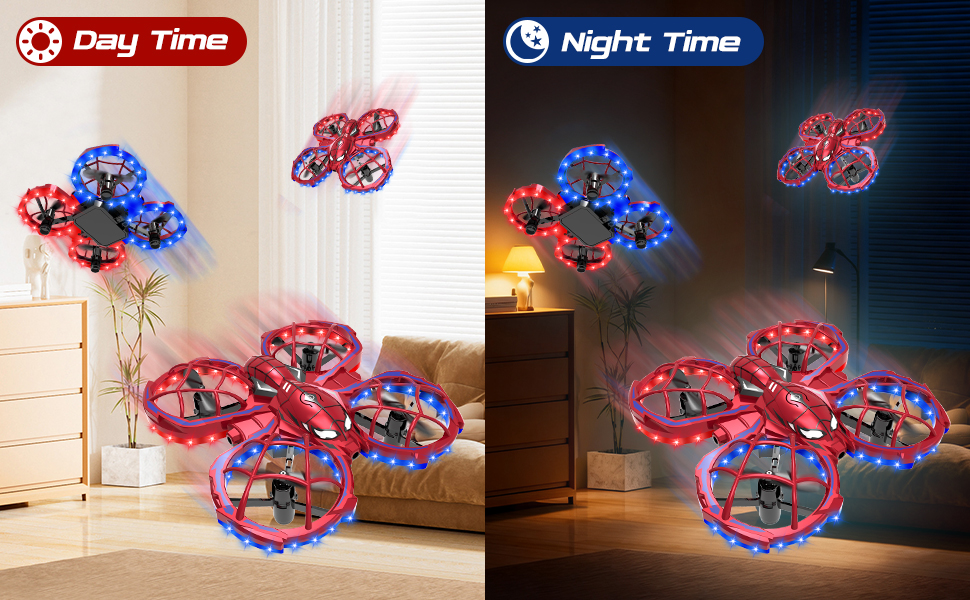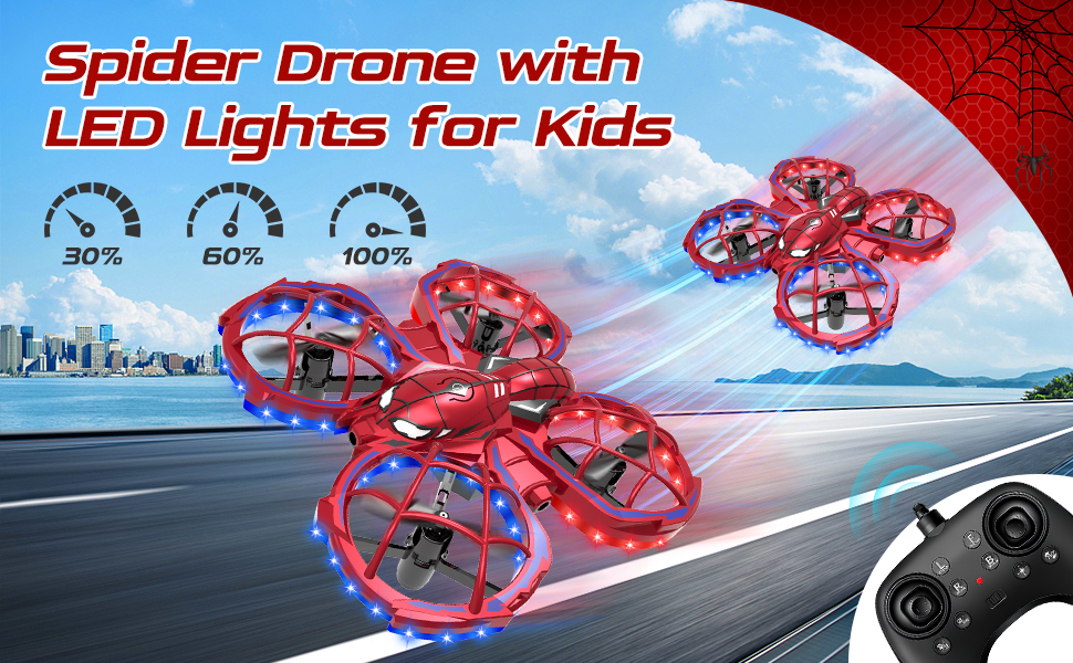 Spider Drone for Beginners: This mini drone is designed with a cool spider pattern, creating a visually striking and unique appearance that captures the imagination and stands out during flight, making it a particularly engaging drone for kids. Note: Hair may get tangled in the blades, causing abnormal drone flight. Removing the hair can restore normal operation.