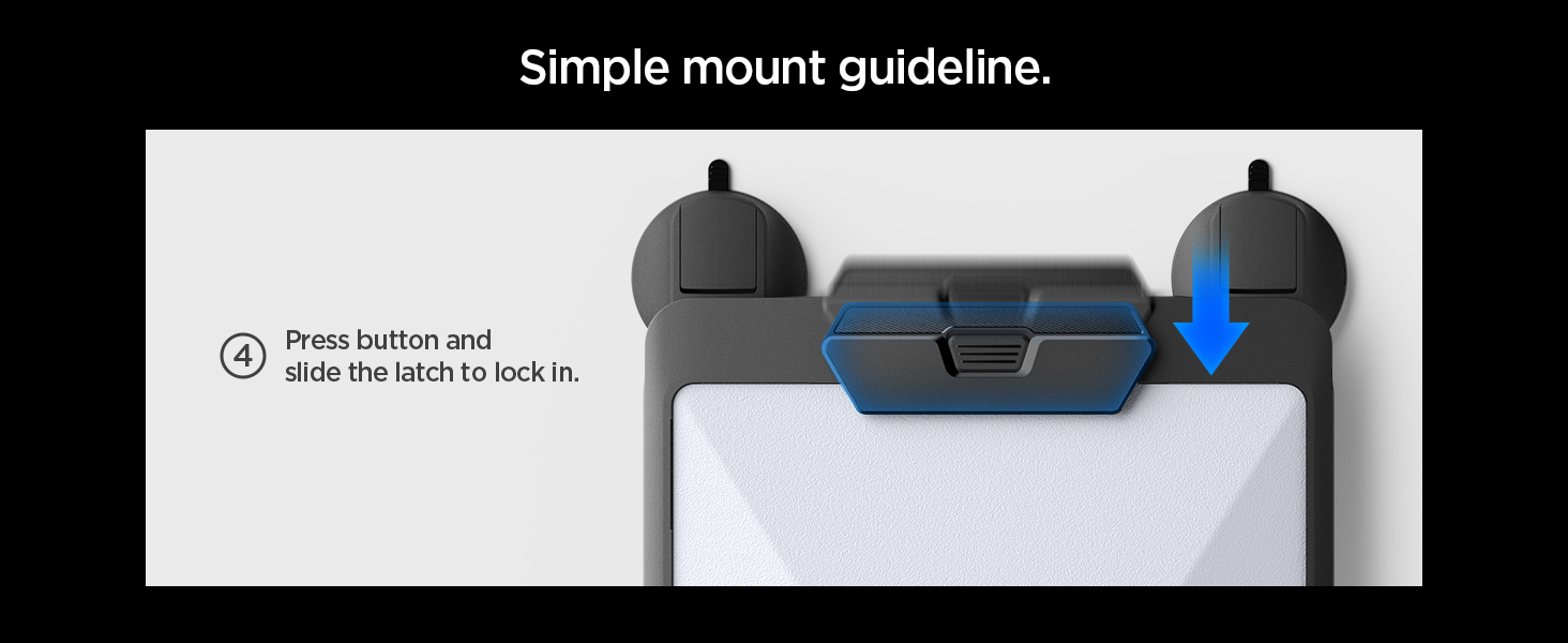 1 All Tools Provided 2 Mount and Suction 3 Flat Side First 4 Press, Slide, Lock