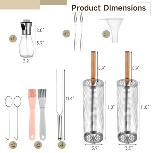 Stainless Steel BBQ Grilling Basket Set, 2 Rolling Mesh