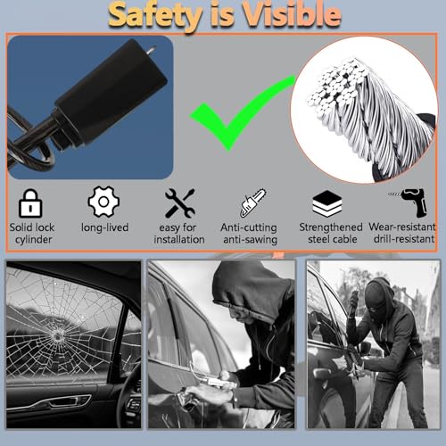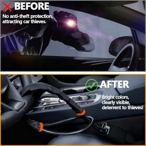 - Heavy-Duty Steel Build: Crafted from premium hardened steel with thickened PVC-coated cable that resists cutting, prying, sawing, and hammering while preventing scratches or wear on your steering wheel surface.