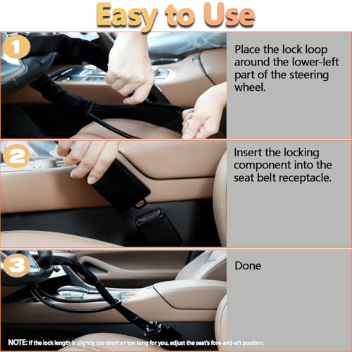 - Universal Vehicle Compatibility: Fits most cars, SUVs, vans, and trucks. Adjustable length and flexible cable make installation simple in seconds, ensuring an ideal fit for a wide range of steering wheel types.