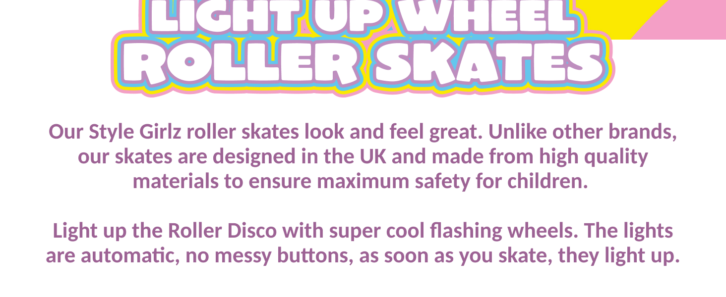 PREMIUM QUALITY – Our Style Girlz skates look and feel great. Unlike other brands, our skates are designed in the UK and made from high quality materials to ensure maximum safety for children.