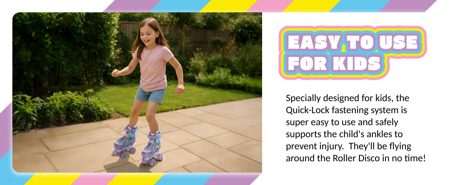 EASY TO USE FOR KIDS – Specially designed for kids, the Quick-Lock fastening system is super easy to use and safely supports the child's ankles to prevent injury. They'll be flying around the Roller Disco in no time!