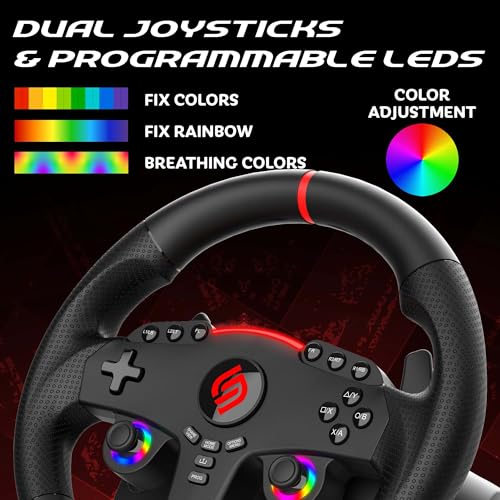 - INTEGRATED CONTROLS: Dual analogue sticks with RGB LED lighting, programmable buttons with 3 sensitivity levels, and paddle shifters for quick gear changes