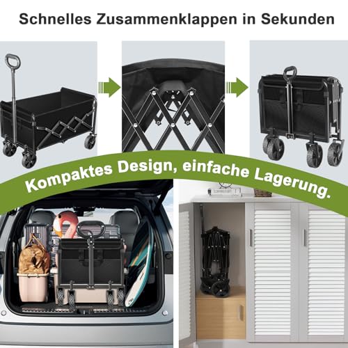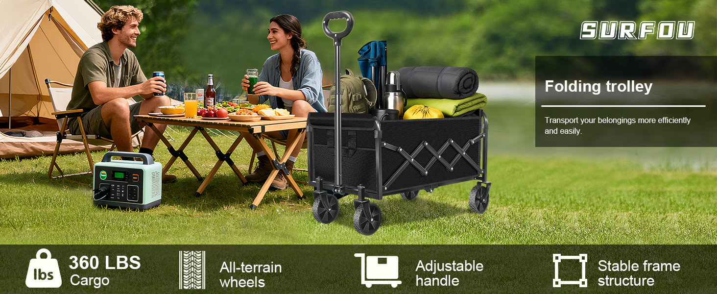 HEAVY-DUTY, LARGE CAPACITY, EASY TO MANOEUVRE: This foldable trolley has 120 litres of extra-large storage space with an amazing load capacity of 160 kg (360 lbs). Whether it's a tent, sleeping bag, folding chair or a large amount of food, it can easily accommodate everything, making camping and shopping effortless.